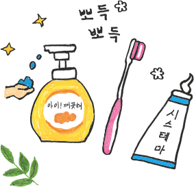‘아이!깨끗해’ 핸드워시와 ‘시스테마’의 치약 & 칫솔로 구성된 <아장아장 위생용품 세트>를 제공하고 있습니다.